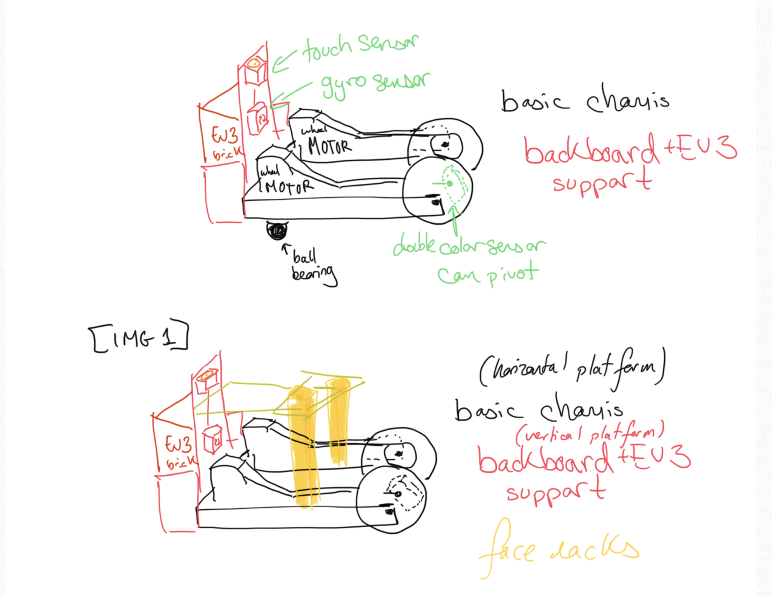 Each year we had huge attachments. this year we worked two months only on the robot. It was a challenge but we learned how to design better. We plan to produce an LDD model, but for now these are the main ideas:
