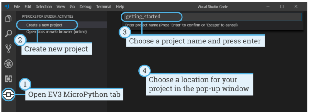 Pasul B: Deschideți EV3 MicroPython, creați un Nou Proiect