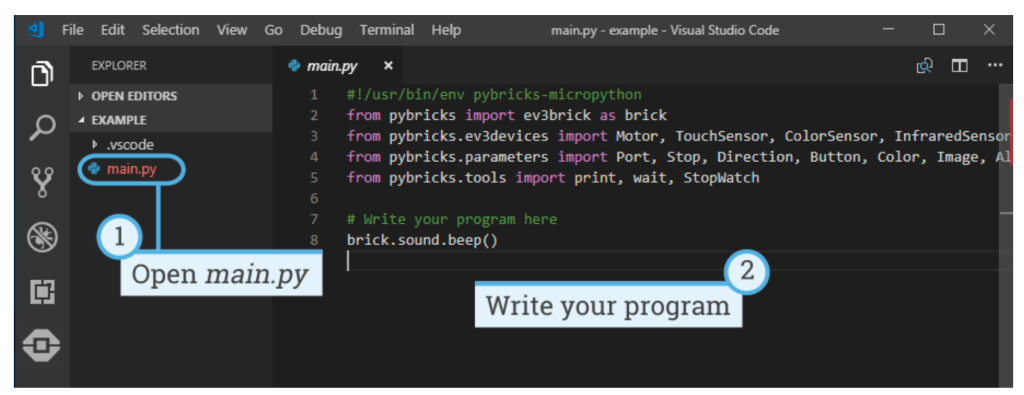 Pasul C: Codul va fi mereu scris intr-un fisier main.py